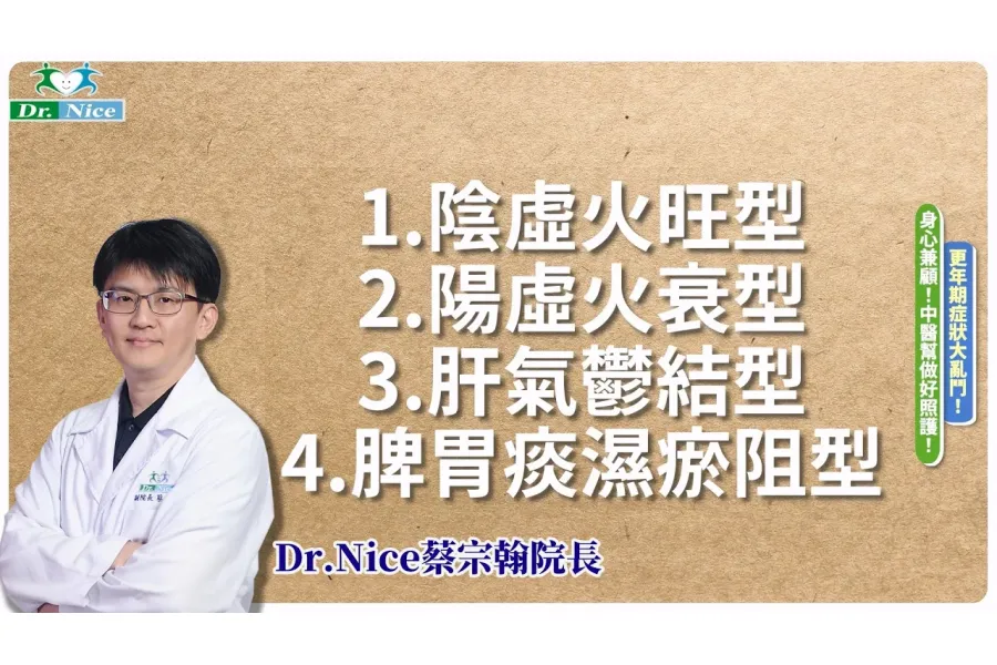 更年期是女性必經的人生階段,更年期症狀很多,主要有四大證型,大家快來了解一下吧!今天讓蔡宗翰院長,來跟大家說一下更年期!